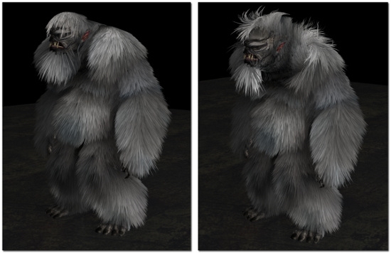 "Una volta che la peluria è stata generata ed è stata tassellata, si modifica ulteriormente la sua forma (ad esempio la larghezza dei peli viene ridotta in concomitanza della punta) e si calcolano le ombre su ogni gruppo di peli. Bisogna prestare grande attenzione nel fare in modo che le ombre dei capelli non contrastino con le altre ombre sulla pelle".